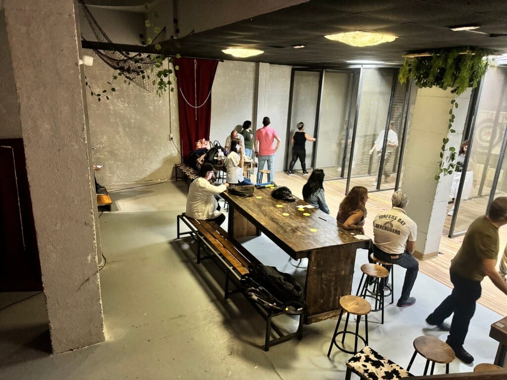El hachómetro es una actividad innovadora y dinámica que combina precisión, destreza y trabajo en equipo. Consiste en el lanzamiento de hachas hacia una diana, donde los participantes acumulan puntos en función de su exactitud.