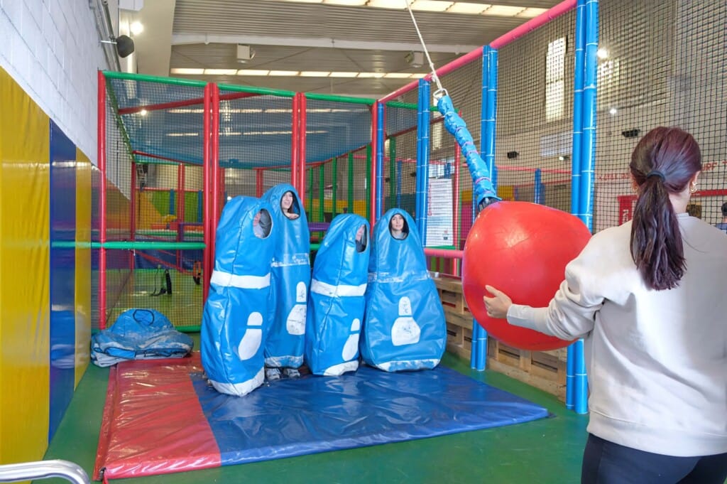 - Bolos humanos — enfundado en un traje que limita el movimiento, tienes que esquivar la bola del equipo contrario
