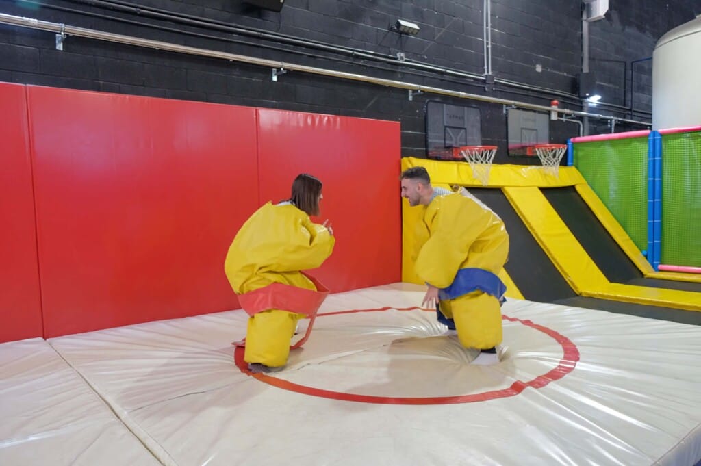 - Lucha de sumo — con traje de goma, el objetivo es sacar al oponente fuera de la zona de combate