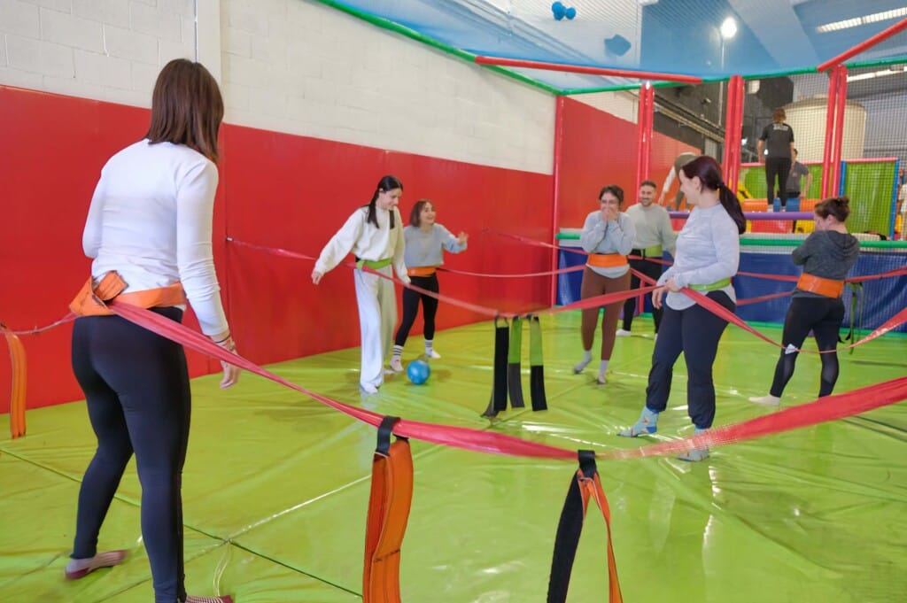 Es una actividad de grupo basada en un circuito de pruebas físico-humorísticas. Los participantes se dividen en equipos y compiten entre sí en retos que combinan habilidad, coordinación y humor. No se necesita experiencia previa ni un nivel de forma física concreto: el circuito está diseñado para que cualquier persona pueda participar y disfrutar.