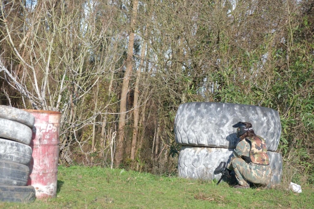 Las partidas se realizan igualmente. El paintball bajo la lluvia tiene su punto – el terreno se vuelve más resbaladizo y añade emoción al juego. Además, la pintura se limpia más fácil después.